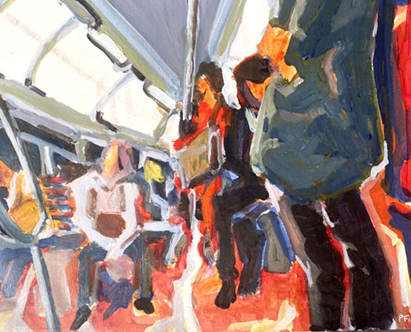 Tableau Le métro rouge de l’artiste Pierre Ficheux représentant lesTransports en commun